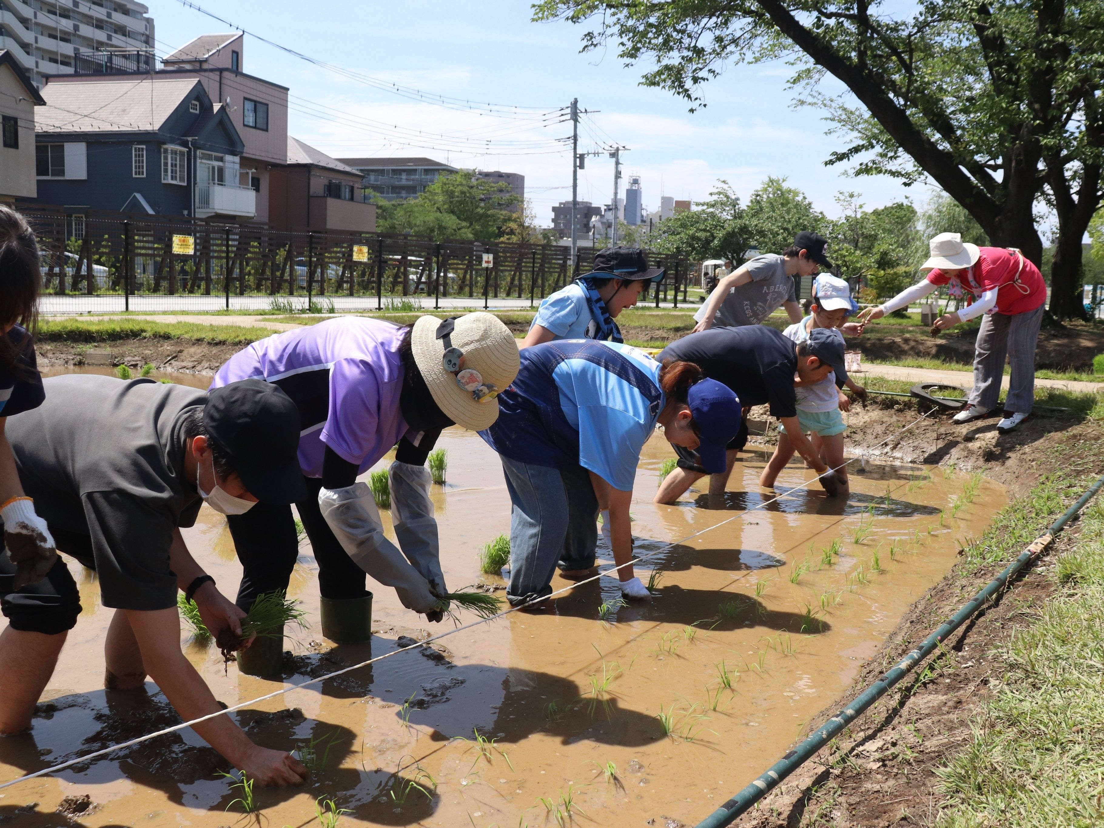 富士見公園内にある農と自然を体感する広場では、畑4面・田んぼ3面をメインに作物を育てています。